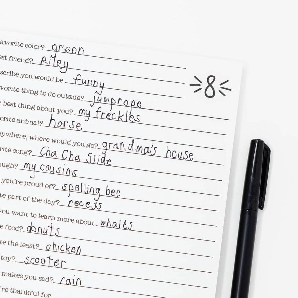 - Interview page (beginning at age 3) with the same questions repeated year after year so that you can look back to see how your child's answers have changed over the years. Some questions change slightly to accommodate older children.