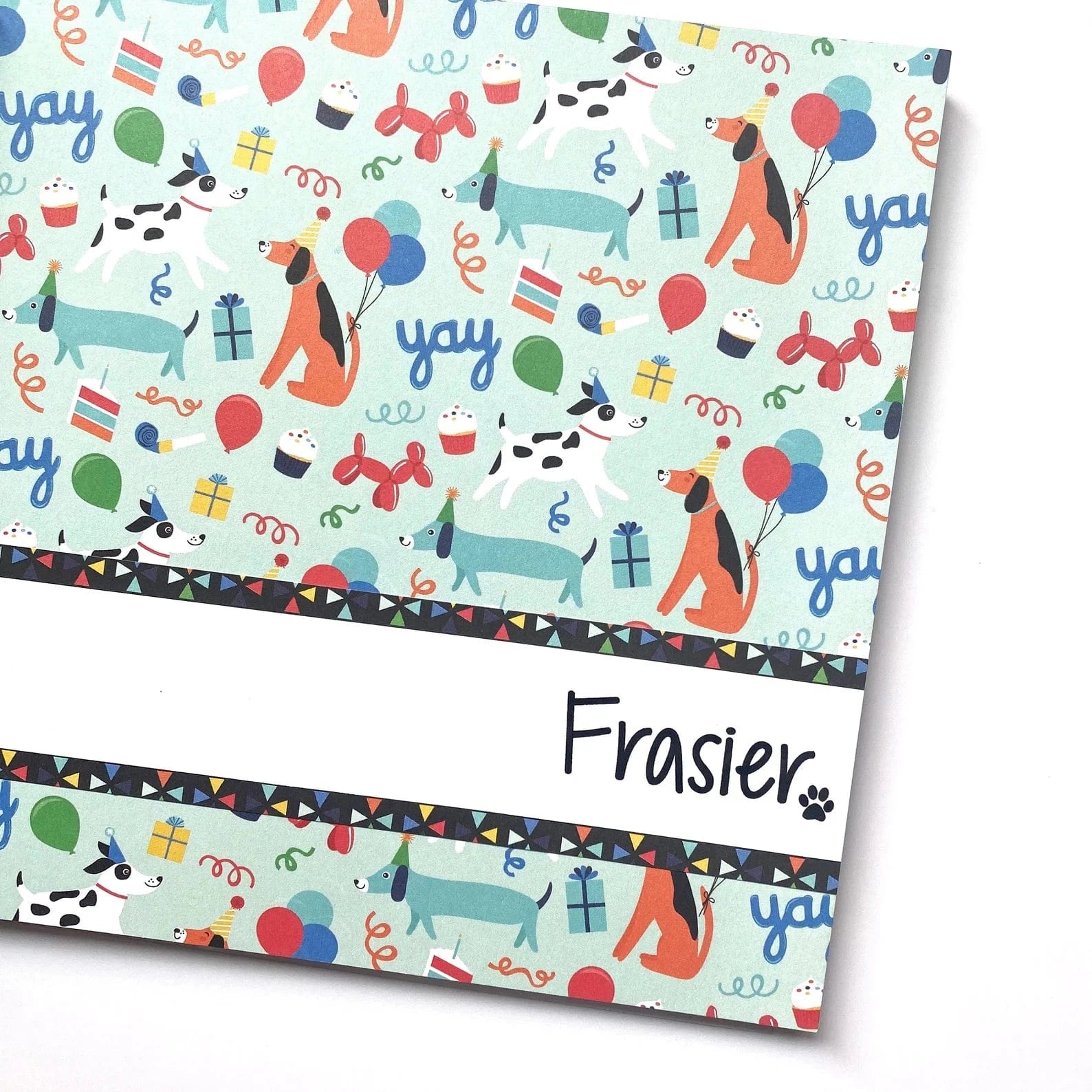 - Your book will have a front cover just like the one pictured in the main picture and a coordinating back cover. We will personalize your cover with your dog's name (please see Personalization Info below) or any phrase of your choosing.