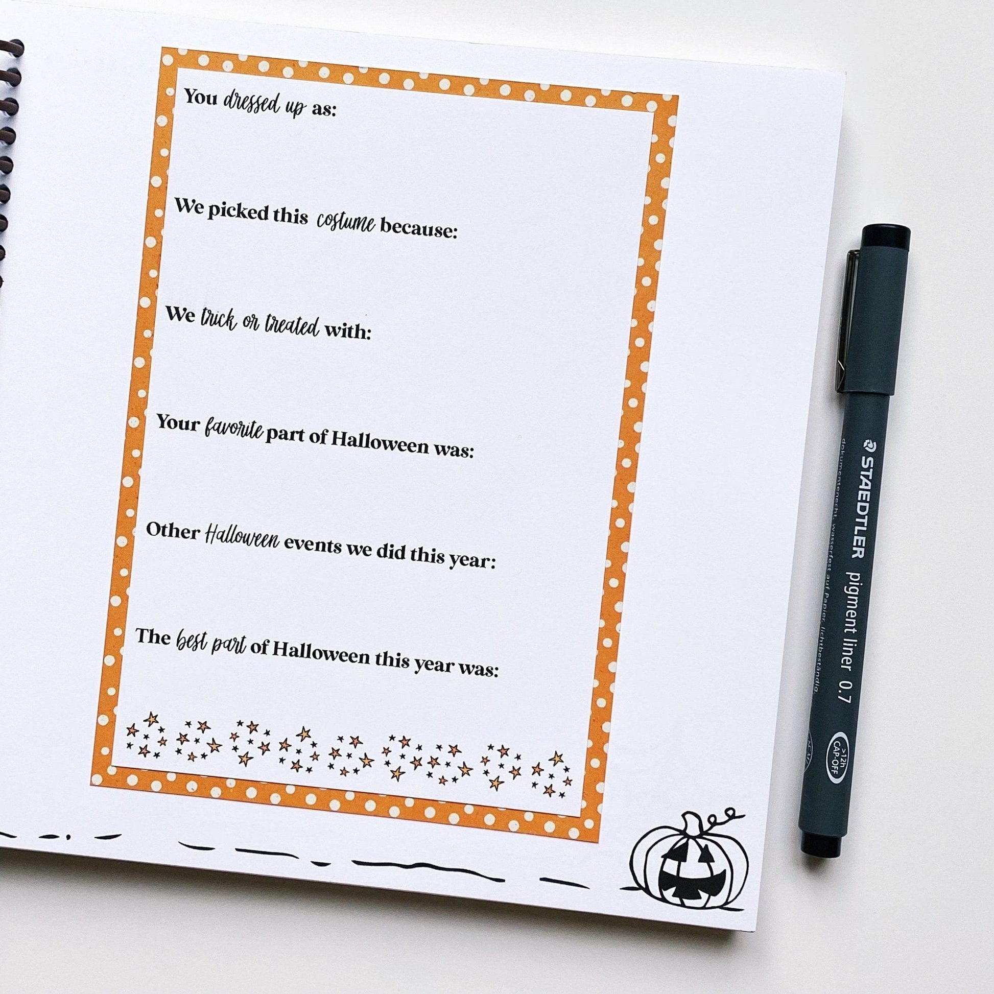 This is an instant digital download, created to accompany our Halloween memory books. No physical pages will be shipped. Digital file will be emailed to you after your purchase in PDF format for easy printing at home. File prints at 8.5"x11" and image can be trimmed down to 4x6 to fit in the book. Feel free to scale when printing to adjust size, if desired.