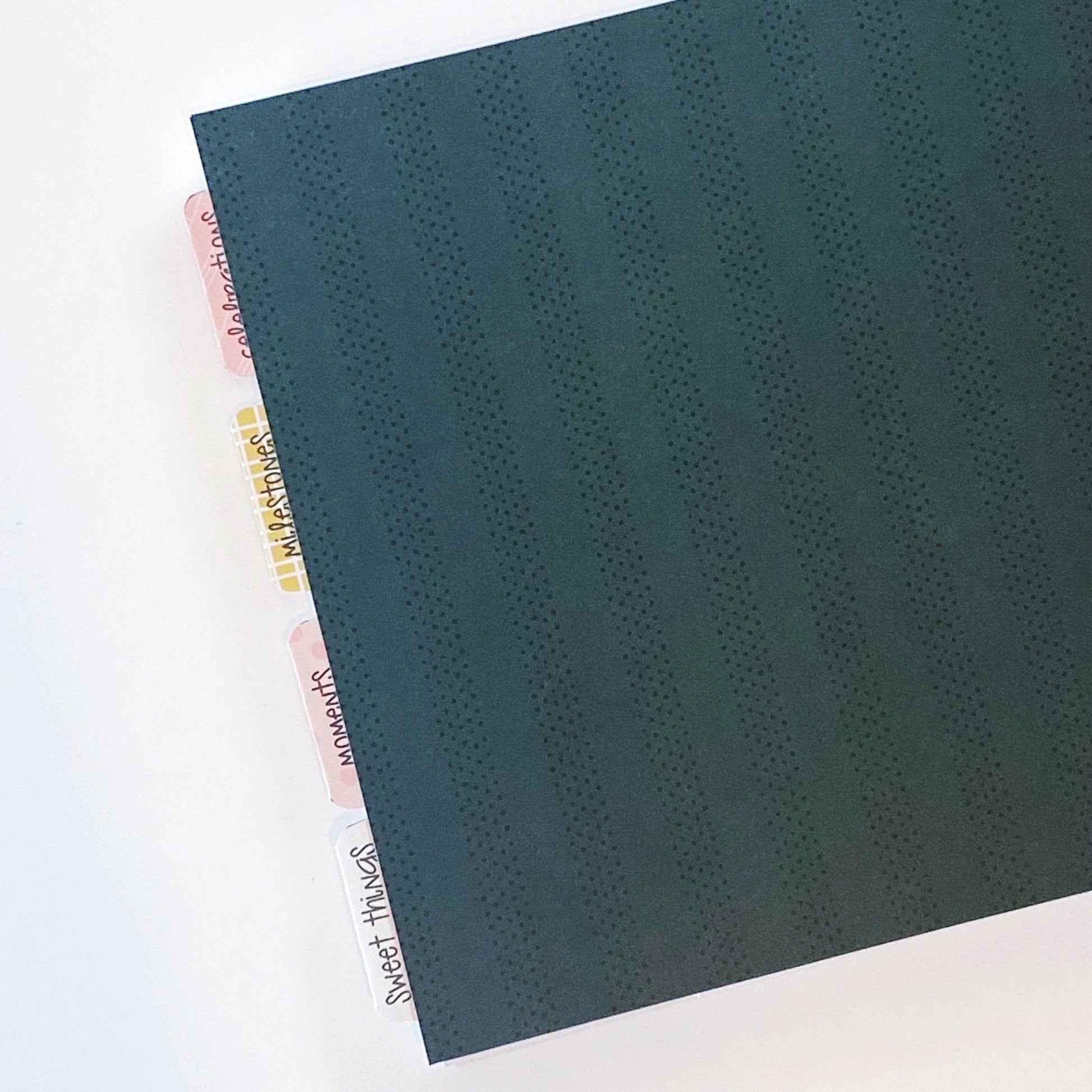 Nine holiday pages, each with a place for a photo and a quick blurb about how you celebrated. The following holidays are included in this section: Valentine's Day, Easter, Mother's Day, Father's Day, Fourth of July, Halloween, Thanksgiving, and Christmas (or Hanukkah. If you'd prefer Hanukkah {and Passover}, just let us know in the note to seller box at checkout). Please use the "Baby's First Holiday" drop-down menu to choose which holiday you'd like this section to begin with, based on baby's arrival date/due date. For example, if baby is due February 3rd, you'd want to select Valentine's Day.
